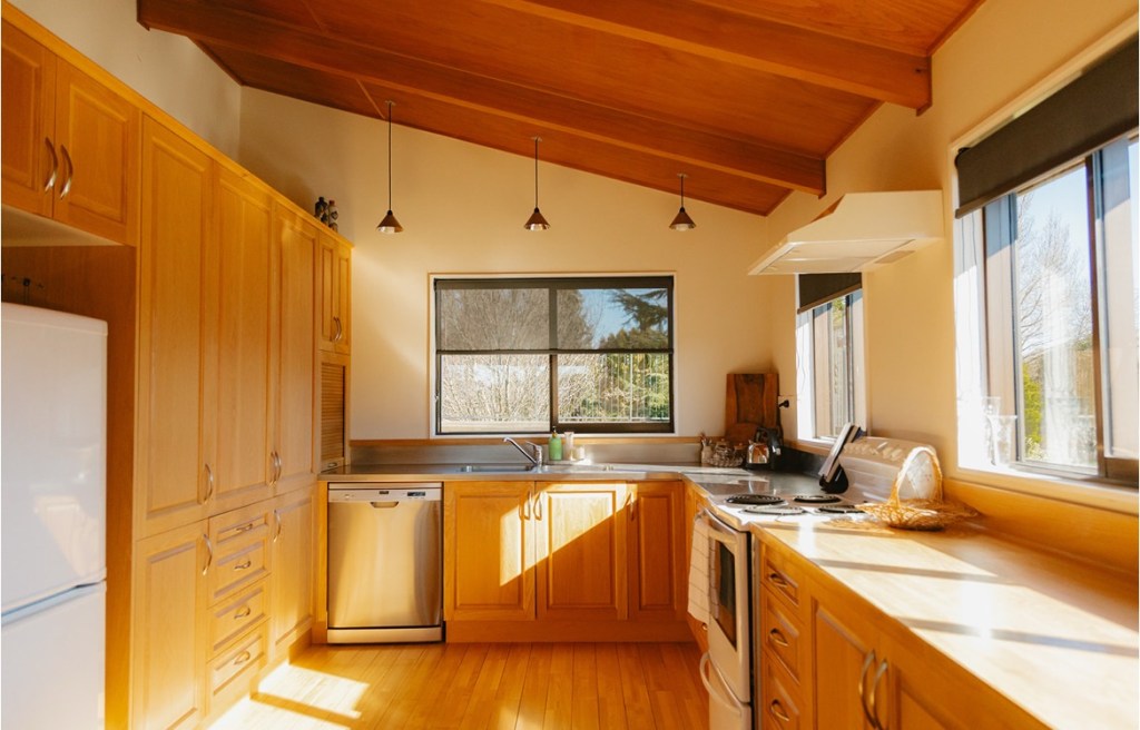 The lodge is a cosy 3-bedroom home, surrounded by lush established gardens with river and private lake access.